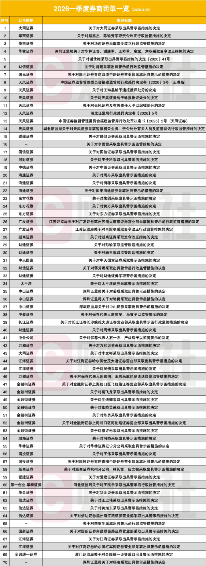 一季度70张券商罚单
