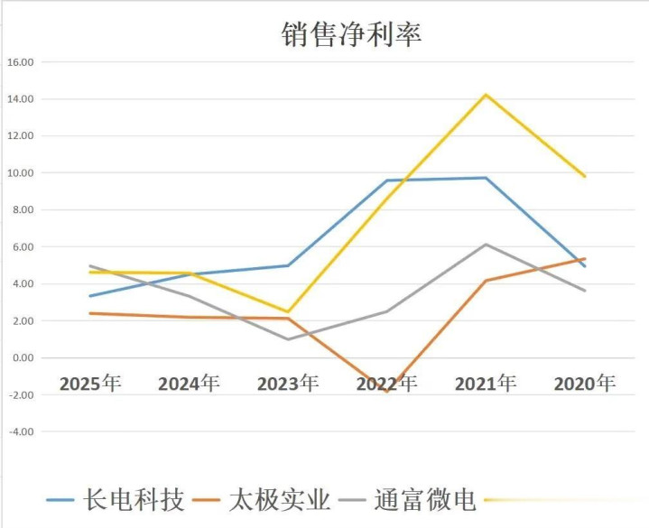 ROE方面,通富微电在四家里排第一。盈利质地、盘活后果、财务杠杆这几个维度皆处在可以的位置。