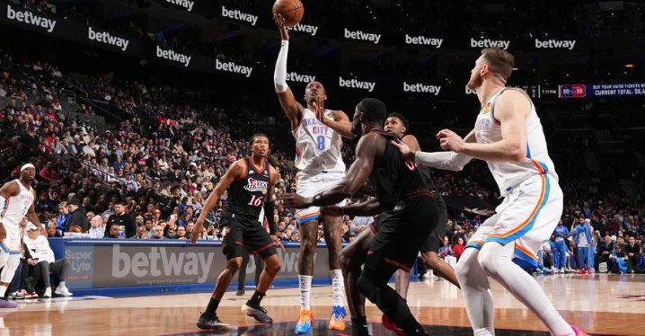 谢伊・吉尔杰斯 - 亚历山大砍下 22 分,指导俄克拉荷马城雷霆拿下12 连胜,在费城轻取敌手。