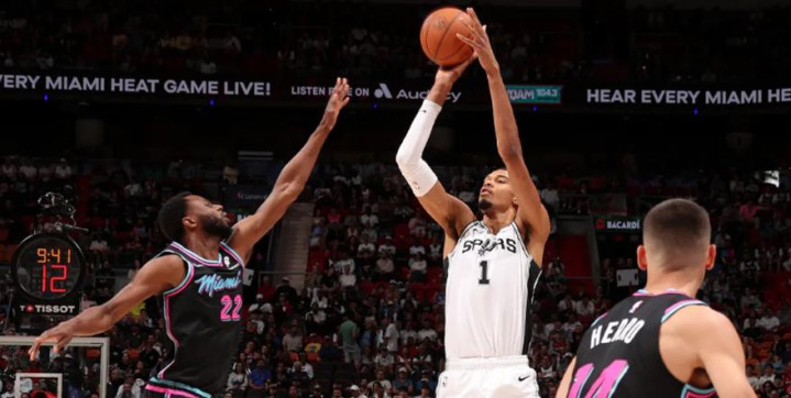 维克托・文班亚马交出 26 分 15 篮板 5 盖帽 4 助攻,圣安东尼奥马刺客场打败迈阿密热火。
