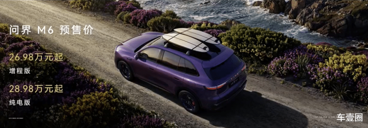 值得一提的是,问界M6也开启了预售。其中,增程版预售价26.98万元起,纯电版预售价28.98万元起。