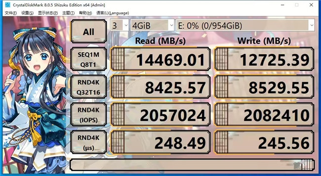 在CrystalDiskMark技俩中,这块铠侠VE10的法例读写高达14469/12725MB/s,米兰体彩app马上读写高达2057K/2082K IOPS,不仅一王人逾越了铠侠官网标注的数据规格,马上读写更是在同价位莫得对手。