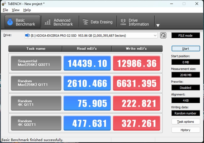 TxBENCH得益亦然不出不测的优秀,读写分歧为14439MB/s和12986MB/s,跟官方得益和CrystalDiskMark都能相互印证。