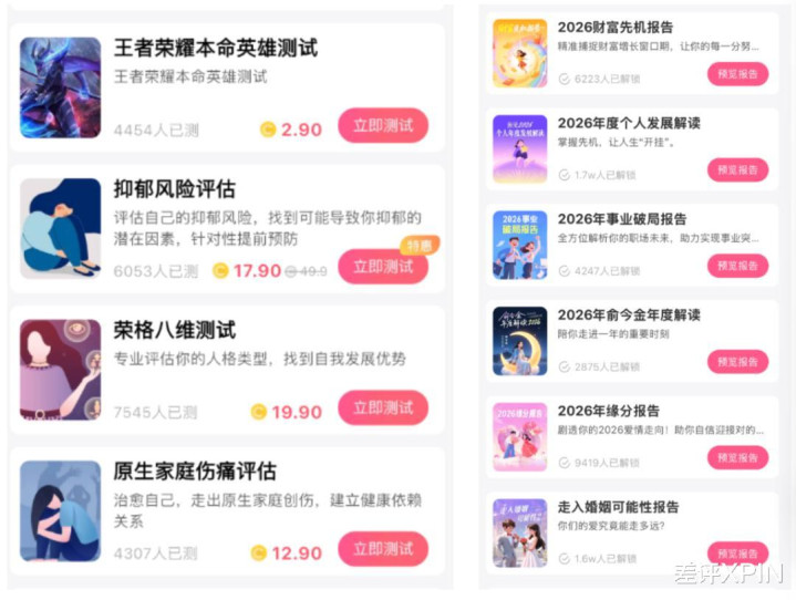 那么,在靠这些小功能诱骗到一大齐用户之后。测测又是如何从这些东说念主口袋里,把钱赚走的呢?