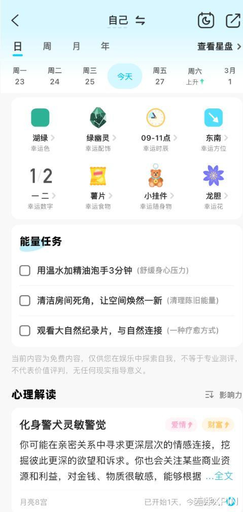 这内容上即是对你今天运势的测算,在社媒上,许多东说念主齐会按照逐日心扉的保举,来决定我方今天的行径。