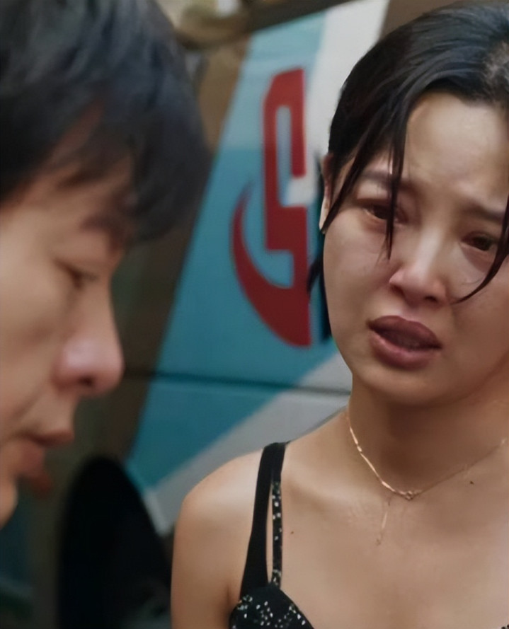 东莞汽车站的那场戏,美云流产后跪在地上找旧爱,头发蓬乱、裙摆沾泥,脖子后还挂着没剪的吊牌。